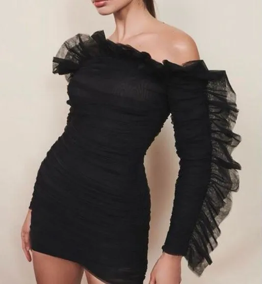 NWT Mimii London Black Ruffle Ruched Long Sleeve Dress Womens Size S - $57 New With Tags - From Stephanie