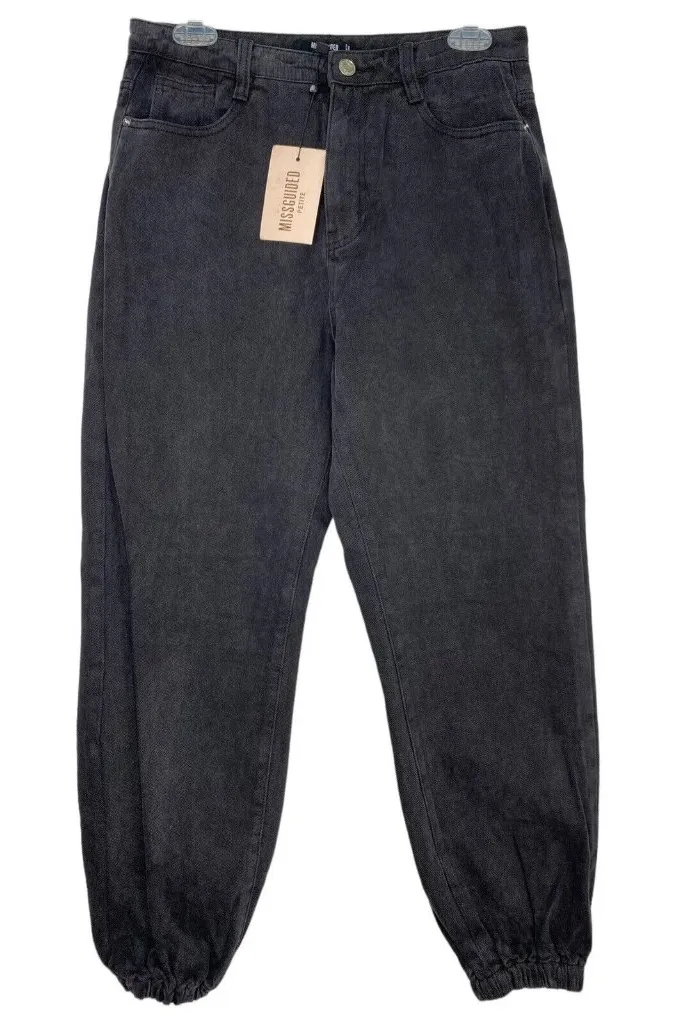 Elevate your style with these brand new Missguided high-rise mom jeans in black carrot. Designed for petite women with a size 8P waist of 27 inches and a relaxed fit, these jeans are perfect for any season, whether it's winter, summer, fall, or spring. The 5-pocket design provides ample storage for your essentials, while the button closure ensures a secure and comfortable fit. Crafted from a cotton blend fabric with a charcoal wash, these jeans have a vintage-inspired look with a modern twist. They're machine washable for easy care and maintenance. These jeans are perfect for any occasion, whether you're running errands or going out for a night on the town. Don't miss out on these stylish and comfortable jeans from Missguided!