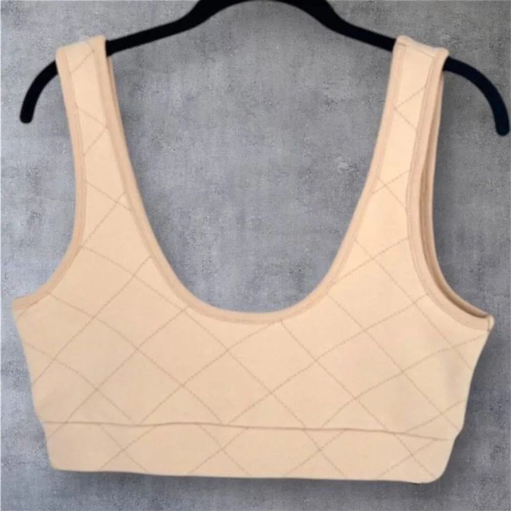 NWT Mono B Quilted Style Cream Cropped Sports Bra Tank Top Medium Can be worn as a crop top or bra.... Show more