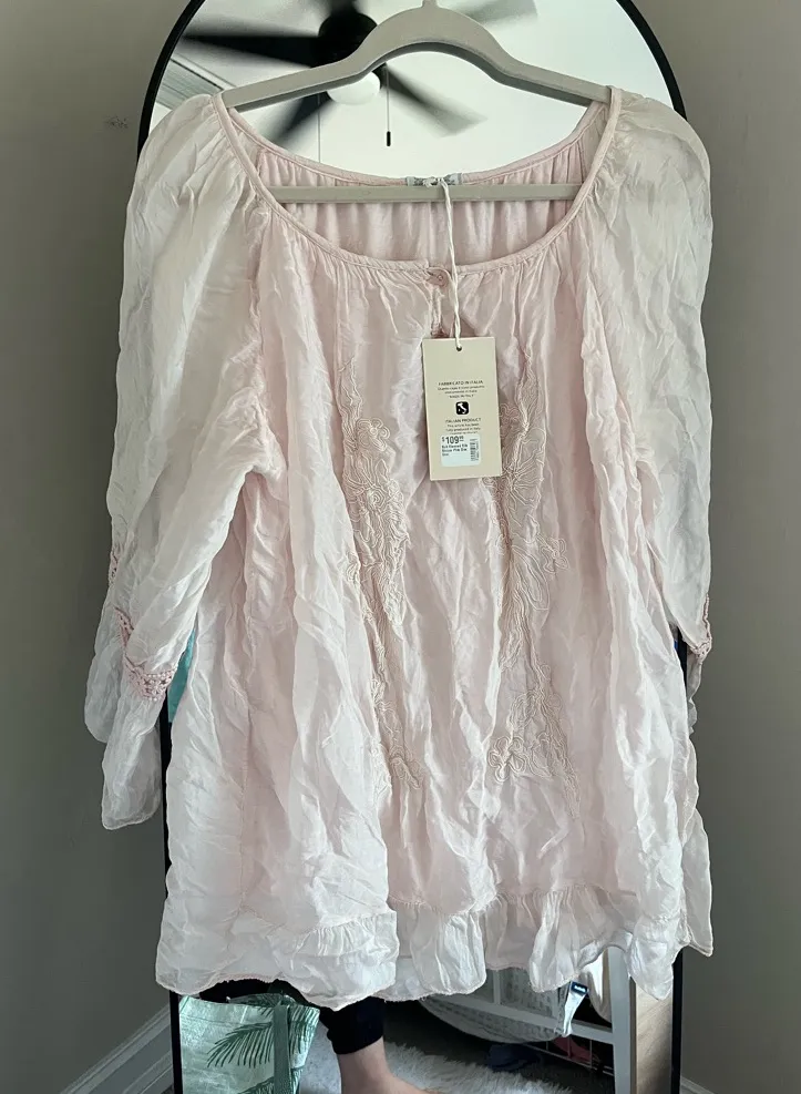 This elegant pink women's top features a delicate design perfect for any occasion. Its soft fabric and stylish cut make it a must-have addition to your wardrobe. Made in Italy blouse New with tags
