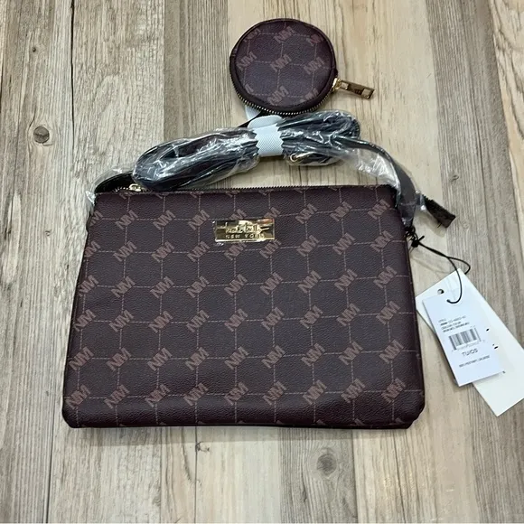 NWT Nicole Miller Purse w/Pouch Logo brown Hardware Shoulder Crossbody Bag - $39 New With Tags - From Marissa