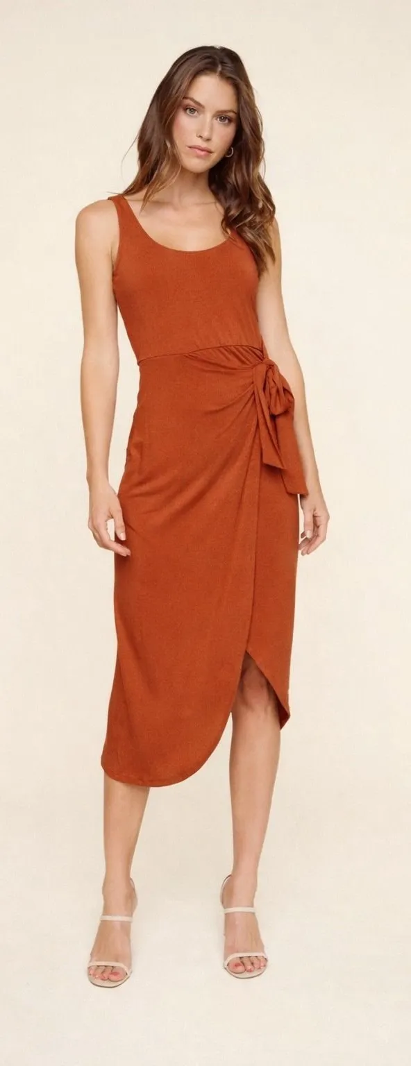 Size XL Petite New with tags - no flaws 19" pit to pit 46" length Discover effortless chic with this Nine Britton midi dress. The rich rust orange hue and flattering ribbed knit fabric create a sophisticated silhouette. A chic tie waist cinches for a personalized fit, while the sleeveless design keeps you cool and stylish. Perfect for brunch with friends, a casual date night, or a sunny afternoon stroll.