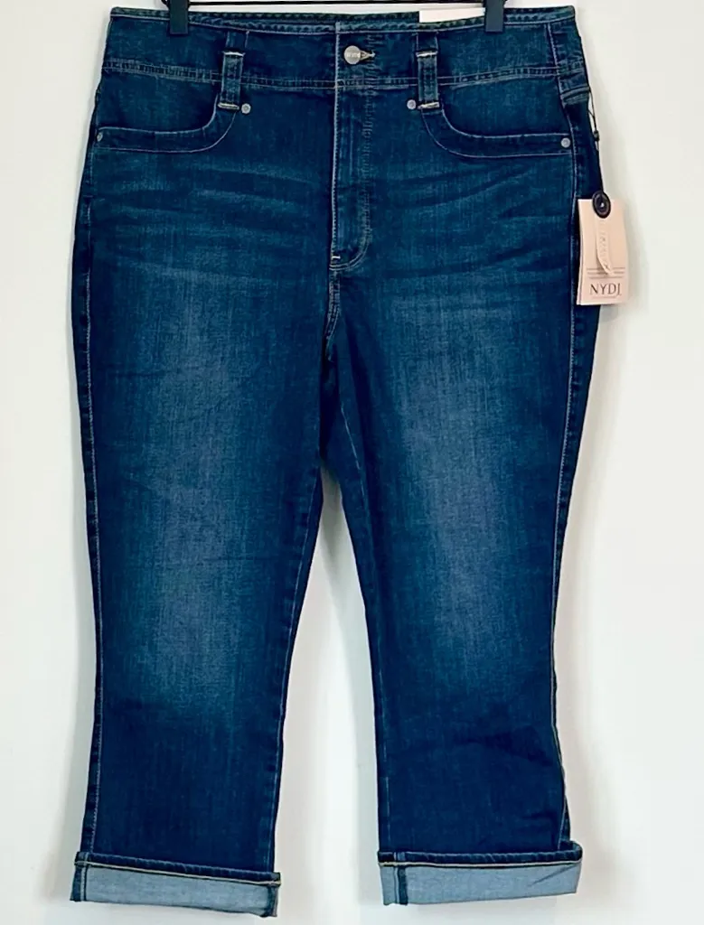 NYDJ Ami Skinny Blue Jean Capris Size: 12 Condition: New With Tags Chic capris in color “Junipero”. Stylish and versatile. Perfect for casual outings. High rise crop Lift Tuck Technology C18
