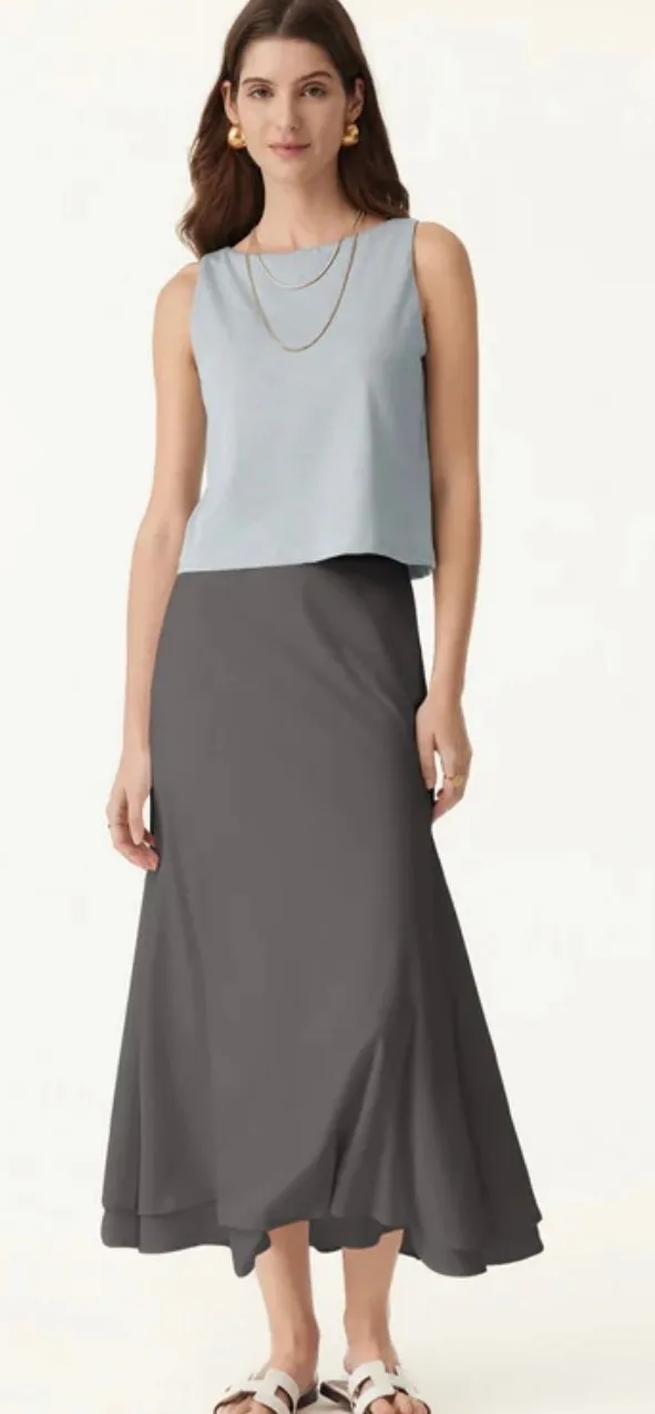 NWT OGL Cotton Linen Flowy Flared French Mole Elastic Waistband Double-Layered M Gray Size M - $50 New With Tags - From Twisted