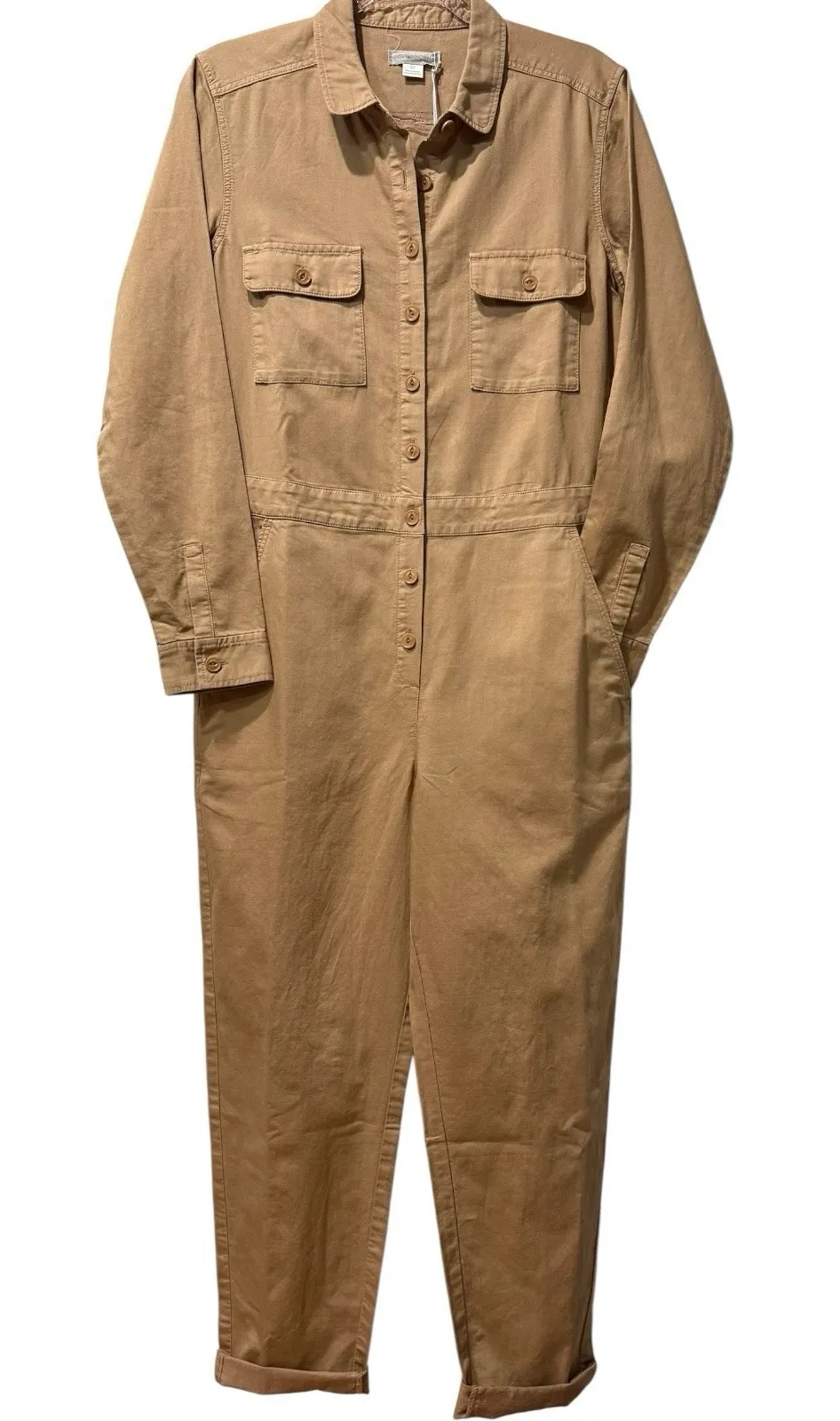 NWT Outerknown Tan Khaki S.E.A. Sea Suit Jumpsuit Coveralls Utility Small $178 New with tags! Stock photo for fit reference. Measurements laying flat Across chest underarms 19" Waist 17" Rise 13" Inseam 27" You won't find an easier outfit than this no-fuss jumpsuit that gets you dressed and out the door in seconds. An effortless 5-second outfit with all the utilitarian versatility for any outing. One of our most beloved jumpsuits! The perfect blend of comfort and effortless style. Inspired by vintage utility coveralls, it's truly a form-meets-function piece you'll rock for years to come. Made from a soft organic cotton and linen blend fabric, garment-dyed for a lived-in feel. Long sleeves to carry you through the cooler months and an easy front zip to get you ready and out the door in minutes! With so many pockets, you can leave your purse.