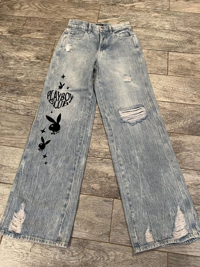 NWT Pacsun Playboy Limited Edition size 26 Denim Jeans Distressed and destroyed with holes. High Ris... Show more