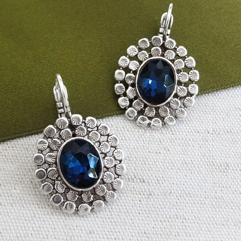 Nwt pair of Ori Tao Oval Drop Earrings Blue Crystal Center 925 Silver Pierced - $22 New With Tags - From Sourced In SoCa