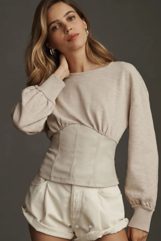 NWT Pilcro Faux Leather Corset Sweater Beige size small women anthropologie - $80 New With Tags - From Eva