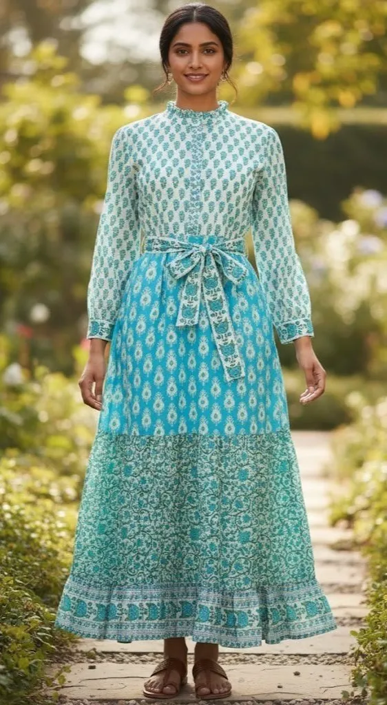 Up for purchase today is... Designer: PINK CITY PRINTS Size: L Fit: Please do not go by size number but rather check measurements listed below to determine if the item will fit. Color: Mint Print Mix Style/Design #: Panama Material: 100% cotton Details: * With a relaxed, wafty fit and button-down placket, the Panama dress can be styled with the matching belt or thrown on loose for days at home. High ruffled neck. Long sleeves with button cuffs. Side seam pockets. Tiered skirt. Ruffle hem. Maxi length. Hand-printed. Lined. Machine wash. Imported. * Condition: New with tags Retail: $282 Measurements: Chest - 40" Waist - 35 ½" Length - 52"