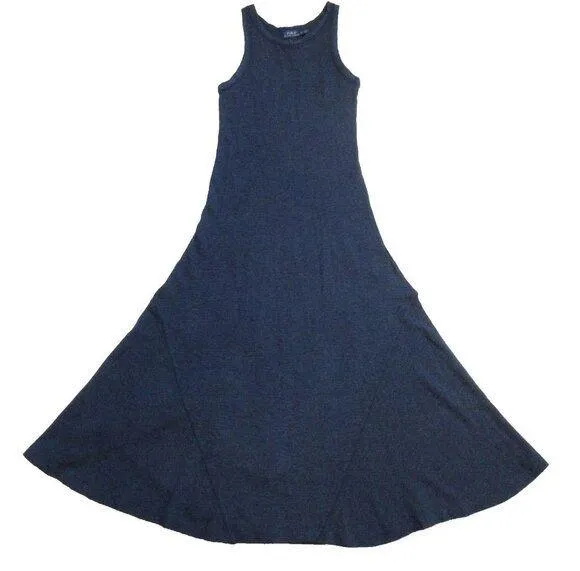 Up for purchase today is... Designer: Polo Ralph Lauren Size: S Fit: Please do not go by size number but rather check measurements listed below to determine if the item will fit. Color: Medieval blue Style/Design #: 211603979001 Material: 100% cotton Details: * Elevated yet easygoing, this waffle-knit A-line maxi dress is framed by scoop neckline and a slight high-low hem. Sleeveless. Godet inserts at hem. Hem slightly longer in back. Machine wash. Imported. * Condition: New with tags Measurements: Chest - 30" Waist - 27" Length - 51" to 53"