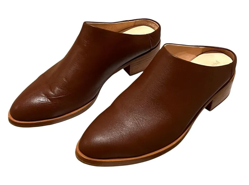Style: Low Down Heeled Mule Color: Redwood (Brown) Size: 8.5 Effortlessly cool slip-ons you'll wear everywhere. Inspired by their best-selling Heeled Mules, made with a slightly lower heel. Perfect For work - meetings, interviews, events, cocktails with co-workers, and office days. Key Highlights - Sustainable Material: Natural Leather outer and lining - Memory foam insoles - Slip on - ~1.5” heel - Almond toe Materials: - Top quality smooth leather uppers - Leather Working Group-certified chrome-free, vegetable-tanned, antimicrobial leather lining - High-density memory foam insoles - Leather soles with rubber toe pads and heel caps for added grip - Water-based glue - Cotton dust bag Condition: New with Tags. A few light marks from being stored and a little leather wrinkling. Comes with dust bag (has a few marks on it). See photos Heeled mules, leather mules, brown mules, red brown mules, low heel mules, poppy barley shoes, poppy barley flats, slip on heels