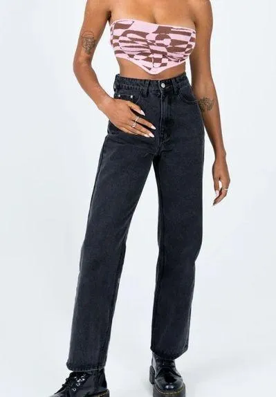 NWT Princess Polly Y2K Henley Wide Leg Jeans. Size 10. Color black. High waist and wide leg. 100% co... Show more