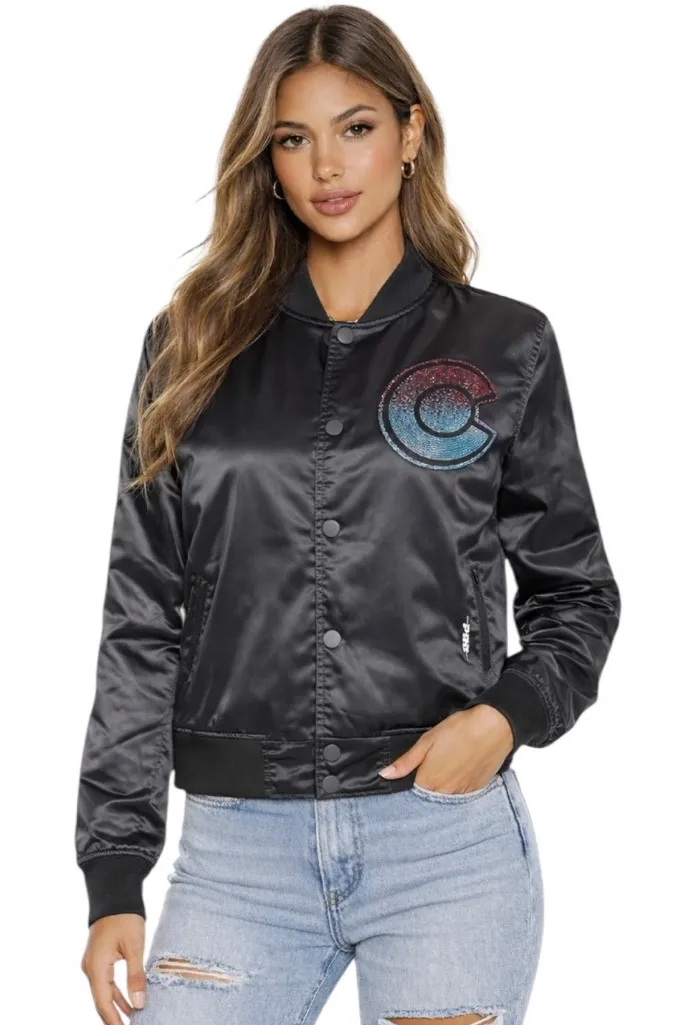 NWT Pro Standard Women's Colorado Avalanche Rhinestone Jewels Satin Jacket Black Size M New with... Show more