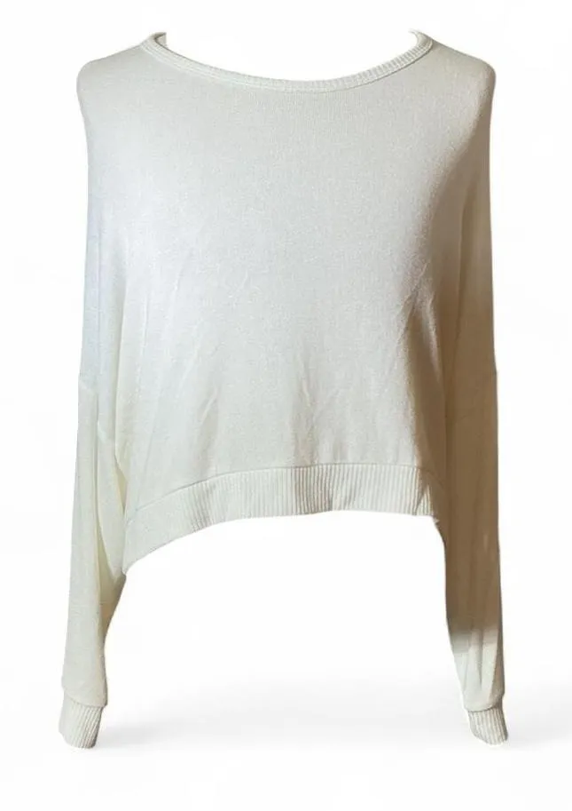 A versatile ivory cross back sweater by Project Social T. This sweater features a relaxed dolman sl... Show more