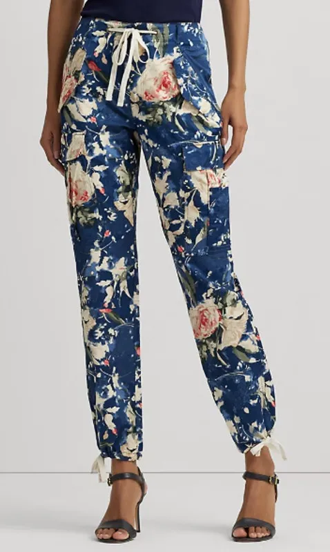 NWT Lauren Ralph Lauren Black Label Women's size 12 Blue Floral Shantung Cargo Ankle Pants. Lauren R... Show more