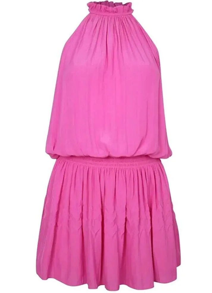 Up for purchase today is... Designer: Ramy Brook Size: M Fit: Please do not go by size number but rather check measurements listed below to determine if the item will fit. Color: Hot Pink Style/Design #: A0420302 Material: 100% polyester Details: * Be the modern Grecian goddess in this pleated dress with a blousy halter-style bodice, a smocked waist and flounced skirt that falls above the thigh. Slips on over head. Smocked elastic at waist. Halter neckline with keyhole. Cut away shoulders. Unlined. 100% polyester. Dry clean. Imported. * Condition: New with tags Retail: $395 Measurements: Chest - 39" Waist - 26" to 36" Length - 33"