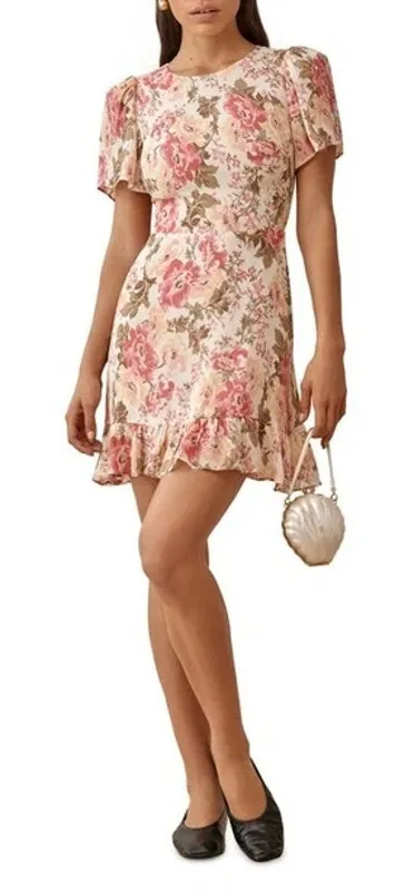 Reformation Beesley floral-print chiffon mini dress in the Farrah color/print. Approx. Measurements... Show more