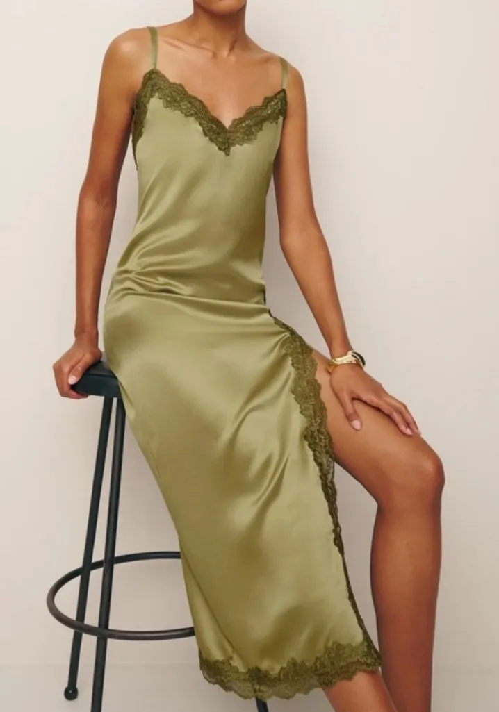 Reformation Karissa Silk Maxi Dress in Olive Oil Green New with tags NWT Size: 4 Color: Olive Oil (... Show more