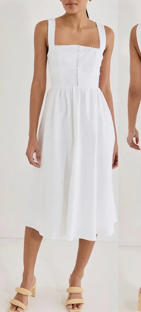 Try not to play favorites. Shop the Tagliatelle Dress from Reformation, a midi dress with a corset bodice, scalloped lace neckline, and a relaxed fitting skirt.