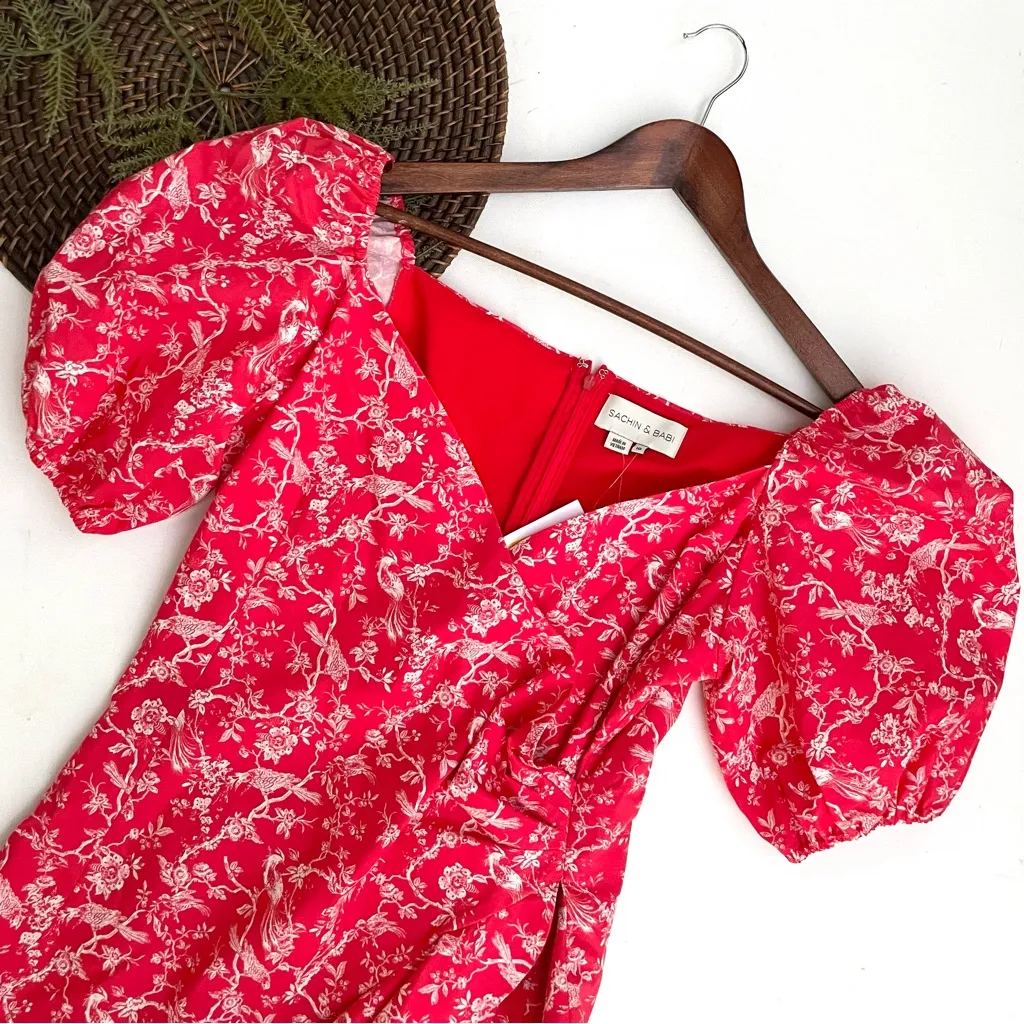 NWT Sachin & Babi Womens Dress Ivy Floral Faux Wrap Puff Sleeve Size 10 Womens Size 10 Dress Coral Red Orange White Floral Vine Ivy Faux Wrap Puff Sleeve Ruffle Excellent NWT Measurments Approximate Laying Flat Chest 19 in Length 36 in RB-0923-0094 15xpm