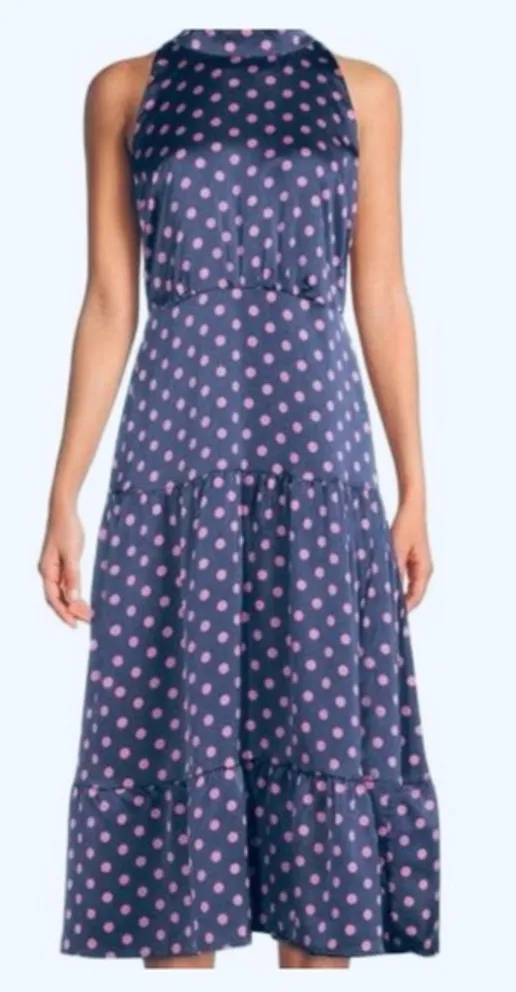 Sam Edelman Blue Pink Polka Dot High Neck Midi Dress NWT 10 Sam Edelman delivers a spot-on style fo... Show more