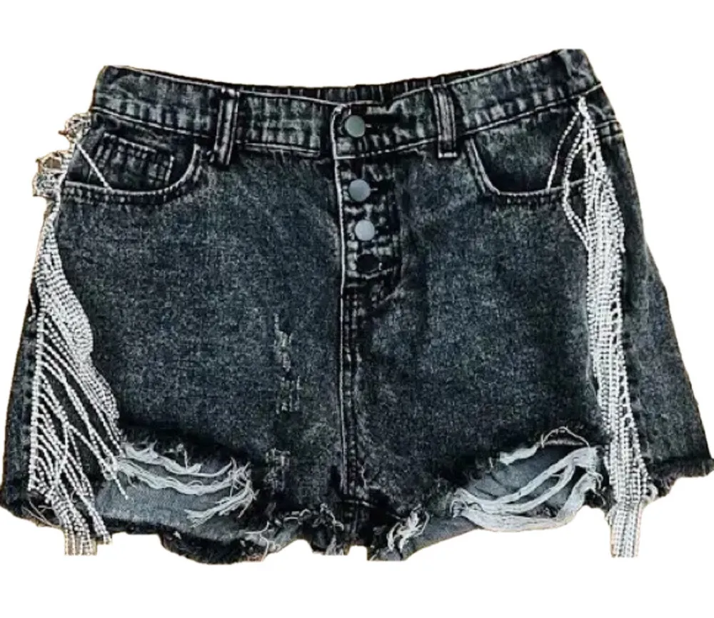 Savanna Jane New with tags Womens Size Small Black Denim Shorts With Rhinestone Fringe Details Wash... Show more