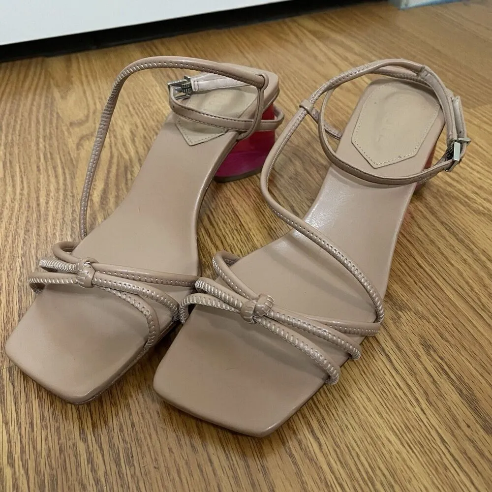 NWT SCHUTZ honey beige Taryn leather strappy pink block strappy heels size 9 Tan - $65 - From kay
