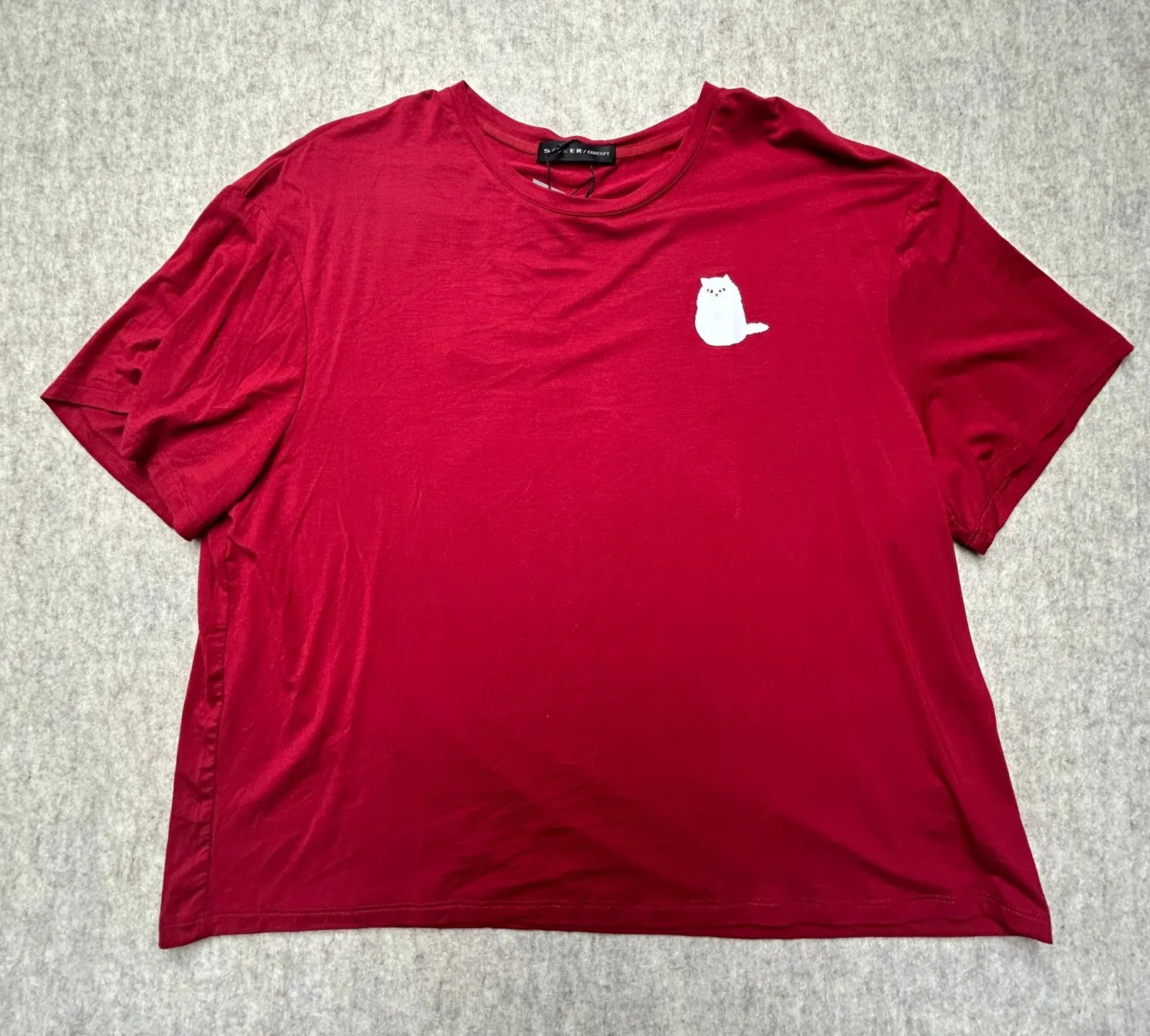 Stylish and comfortable, a red S.DEER Concept t-shirt featuring a charming white cat graphic. This casual tee offers a relaxed fit, perfect for everyday wear. The top is designed with a classic crew neck and short sleeves, making it a versatile addition to any wardrobe. Its unique cat design adds a playful touch, setting it apart from basic tees. A great choice for a casual day out, a relaxed weekend at home, or even a fun get-together with friends. Color: Red Type: T-Shirt Department: Women Style: Basic Neckline: Crew Neck Sleeve Length: Short Sleeve Sleeve Type: Classic/Fitted Sleeve Pattern: Solid Features: Crew Neck, Cat Graphic, Relaxed Fit, Short Sleeve, Lightweight Character: Cat Fit: Relaxed Keywords: S.DEER Concept, red t-shirt, womens top, cat graphic, crew neck, short sleeve, casual wear, relaxed fit, size large, ladies tee, new with tags