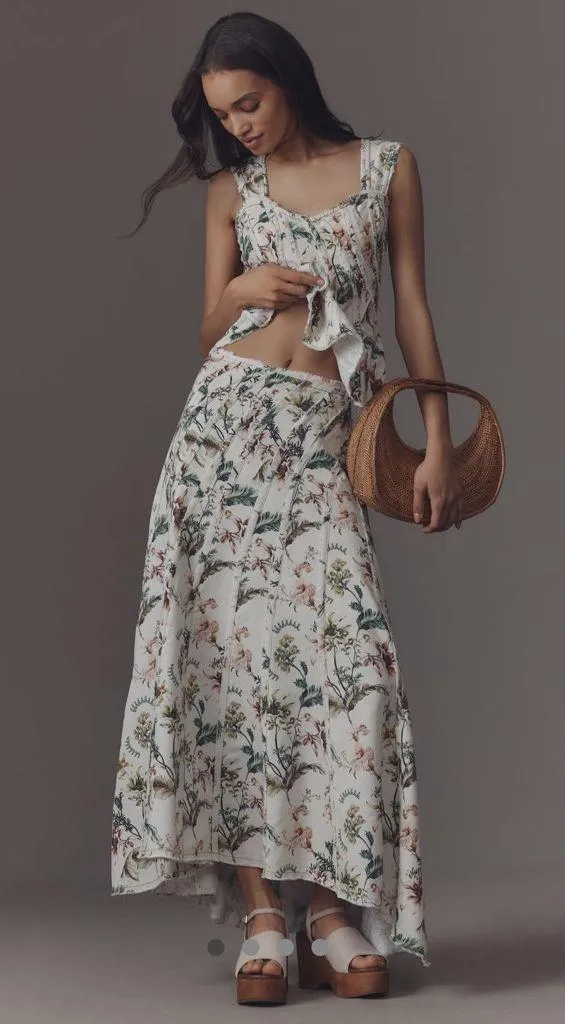 THIS IS A SET! NWT By Anthropologie Swirled Seam Maxi Skirt Size 6 runs large Swirled Seamed Tank S... Show more