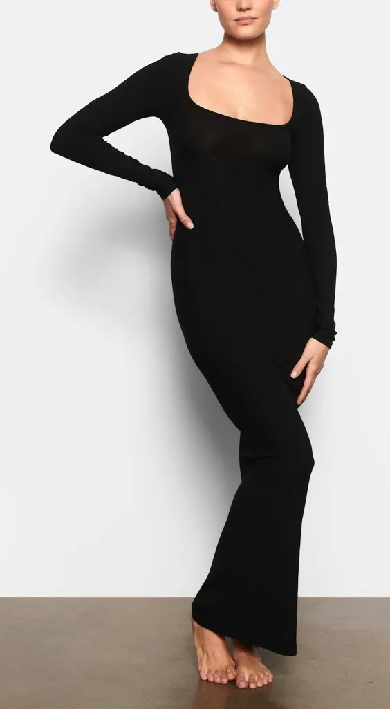 NWT Skims Soft Lounge Long Sleeve Maxi Dress Onyx Black size Small S ribbed - $81 New With Tags - From Chandler