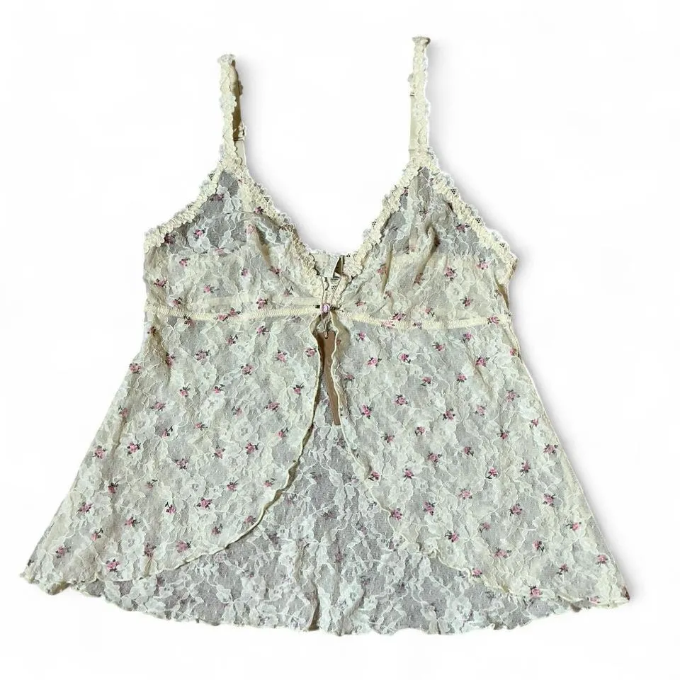 SKIMS Stretch Lace Babydoll in Ivory with a delicate Butter Rosebud print. This piece features adjustable spaghetti straps and a V-neckline with a charming lace trim. The babydoll silhouette offers a flattering and comfortable fit, with a playful open front closure. Perfect for lounging at home, a romantic evening, or as a delicate layering piece under a sheer top. Keywords: SKIMS, babydoll, stretch lace, floral print, ivory, lounge wear, romantic, delicate, sheer, feminine, boudoir, sleepwear, luxury, nightgown All clothing are cross posted, #Feminine #Cottagecore #CoquetteGirl