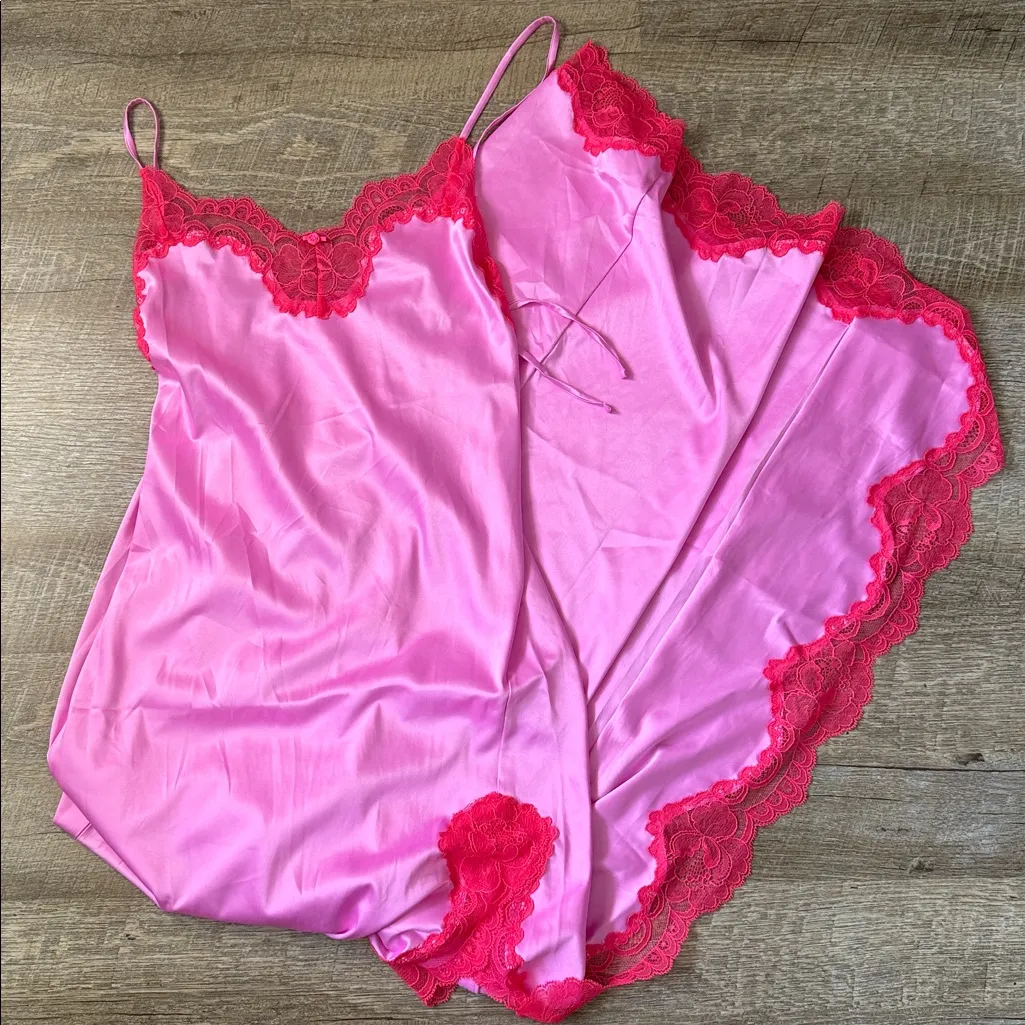 NWT Skims Stretch Satin Lace Long Dress in the Neon Orchid Multi Color Size S Pink - $128 - From Amanda