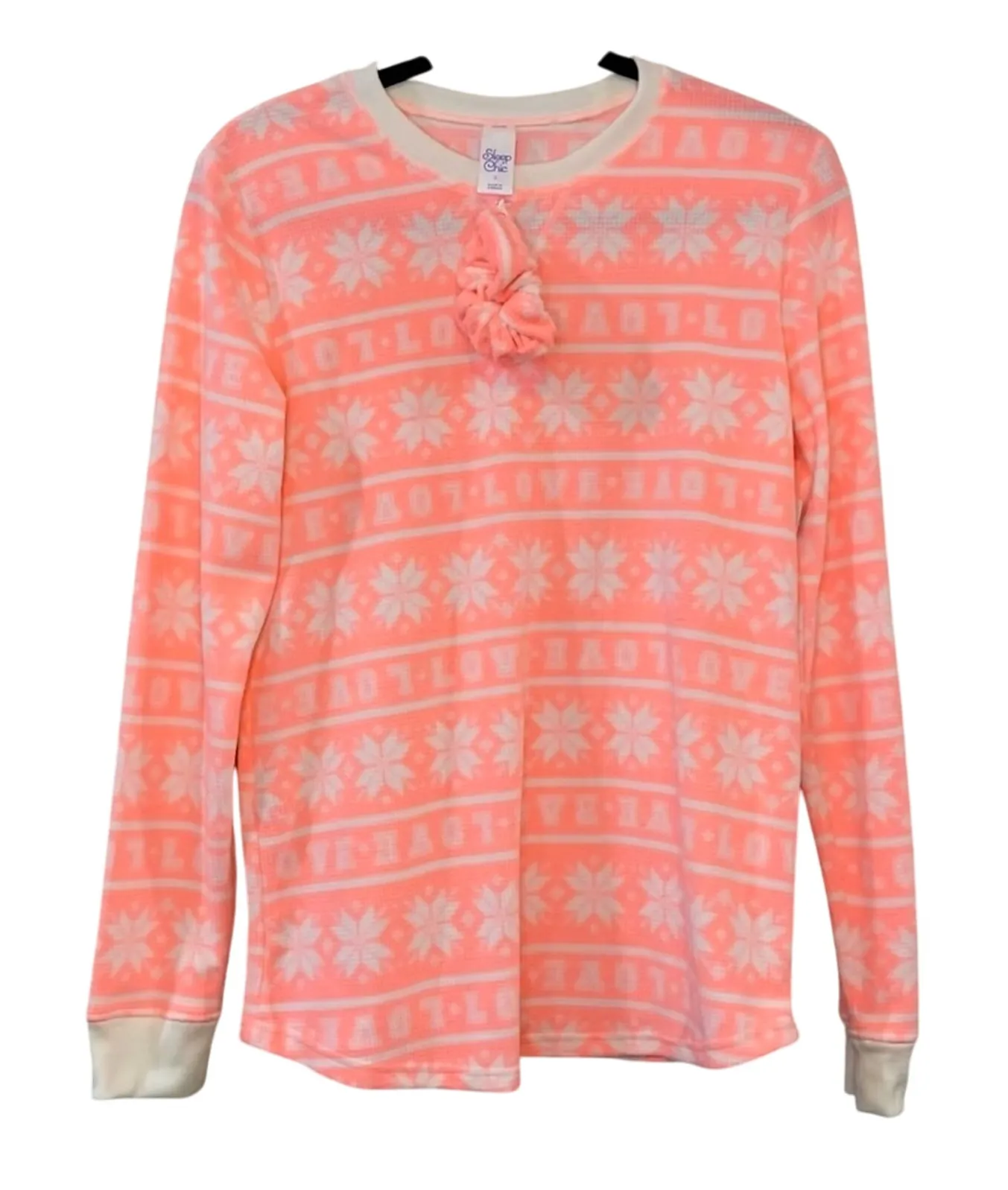 NWT Sleep Chic Peach & Cream Soft Fuzzy Pajama Top with Matching Scrunchie Pink - $12 New With Tags - From Carrie