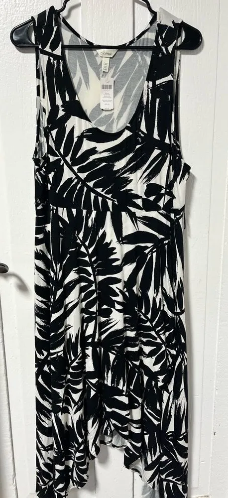 NWT Soma Sleeveless Faux Wrap Midi dress with waist tie black & white palm XL - $45 New With Tags - From Jessica