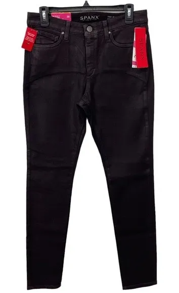 NWT SPANX 5 Pocket Slim-X Skinny Faux Leather Wax Coated Jeans Size 29 in Aubergine Wax. These have... Show more