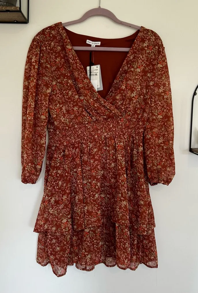 NWT Spirit of Grace Ditsy Floral Long Sleeve V Neck Mini Dress Size XL Measurements (approximate,... Show more