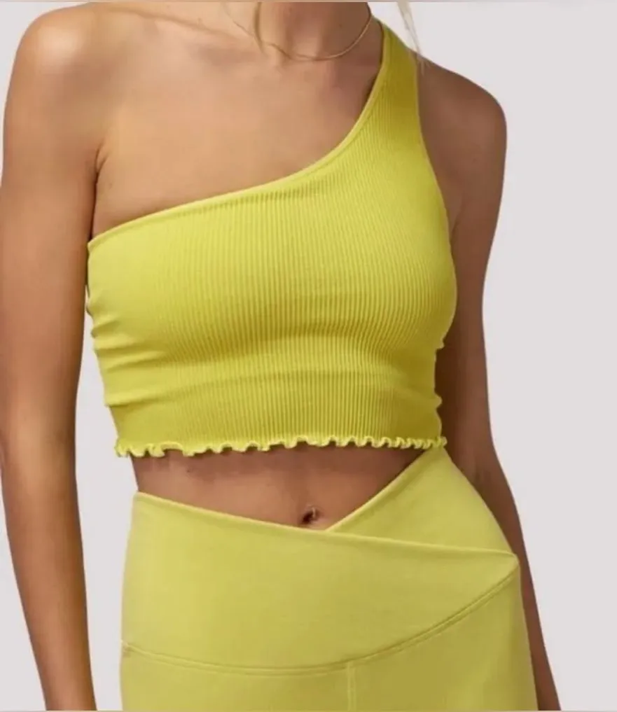 NWT spiritual gangster Luna crop one shoulder tee size XS/S in chartreuse Yellow - $20 New With Tags - From Miranda