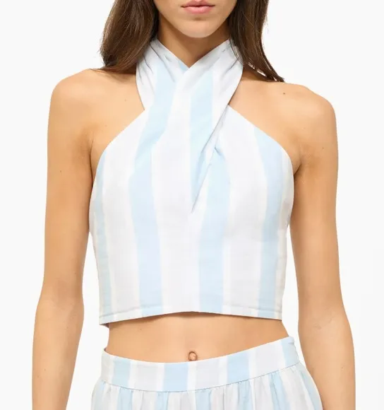 NWT Staud Kai Striped Cotton Halter Top Blue Size L - $138 New With Tags - From Kari
