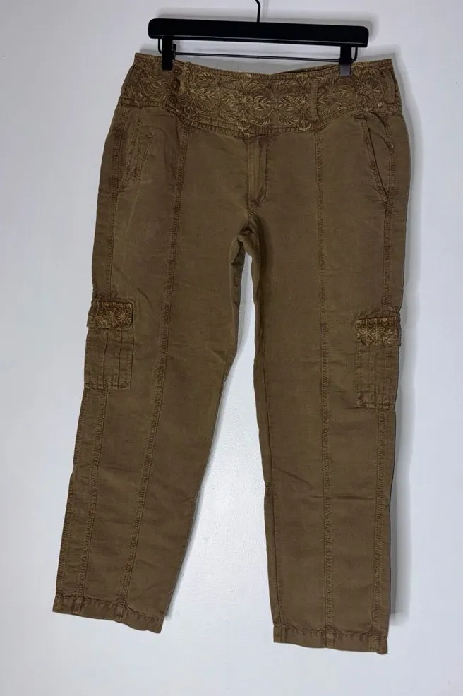 NWT Sundance P12 Brown Linen Cotton Pants Embroidered Waistband Cargo‎ Pants Size 12P - $57 New With Tags - From Crystal