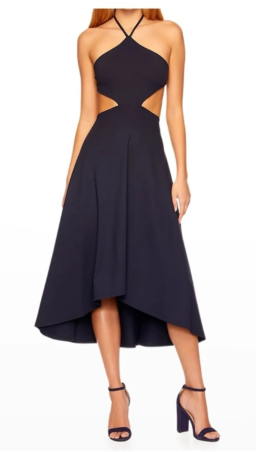 NWT Susana Monaco Cut Out Waist High Low Midi Halter Dress L Blue Features: -Unlined -Halterneck an... Show more
