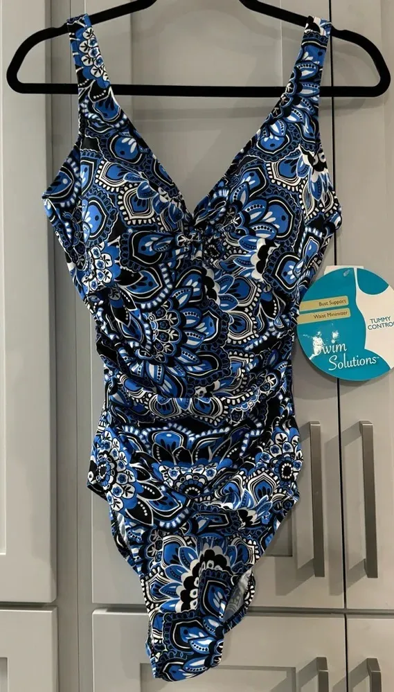 NWT Swim Solutions Blue Floral Mandala One Piece Swimsuit w/ Ruching‎ size 16 - $52 New With Tags - From Jennifer