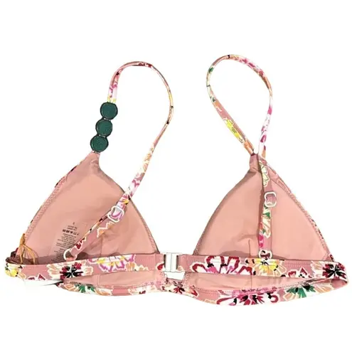 Tanya Taylor Tia Swim Bikini Top Floral Dahlia Beaded Adjustable Straps Removable Cups Small Pink Gr... Show more