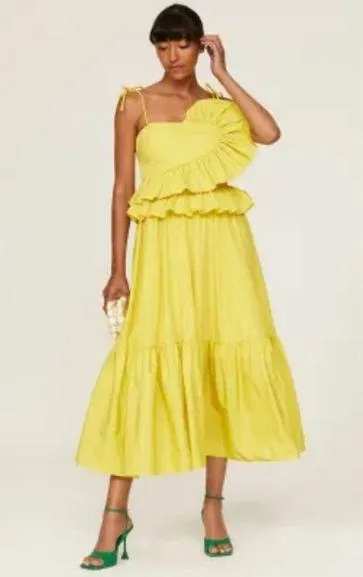 New with tags! Tanya Taylor Yellow Delphine Ruffle Detail Midi Dress. Size 8. A statement silhouett... Show more