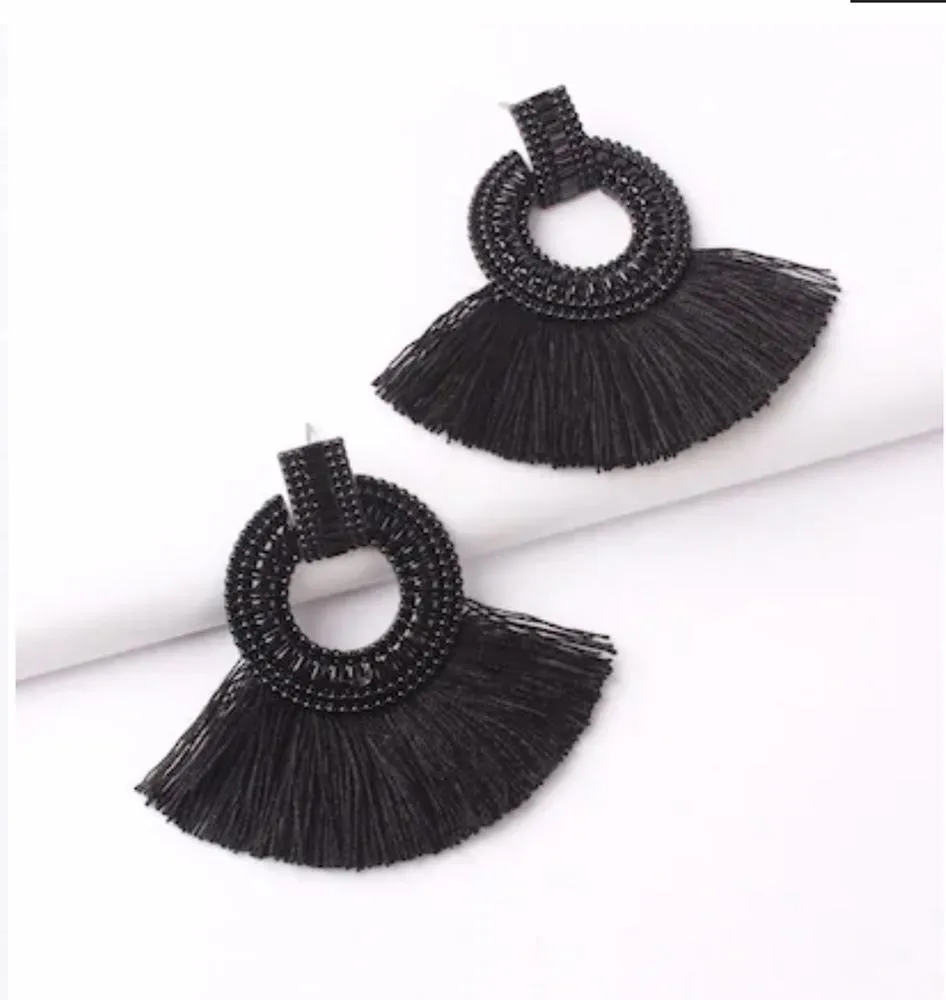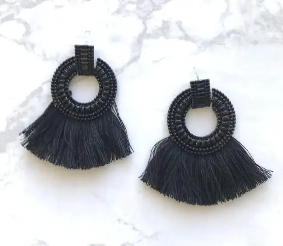NWT Tassel Decorated Hoop Drop Earrings Black - $13 (56% Off Retail) New With Tags - From Mirjana