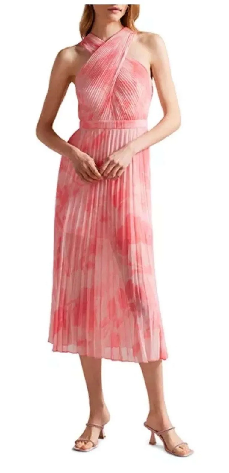Keywords: Ted Baker, Midi Dress, Pleated Dress, Floral Dress, Cross Front Dress, Coral Dress, Pink Dress, Designer Dress, Party Dress, Special Occasion Dress, Womens Dress, Size 5, New with tags