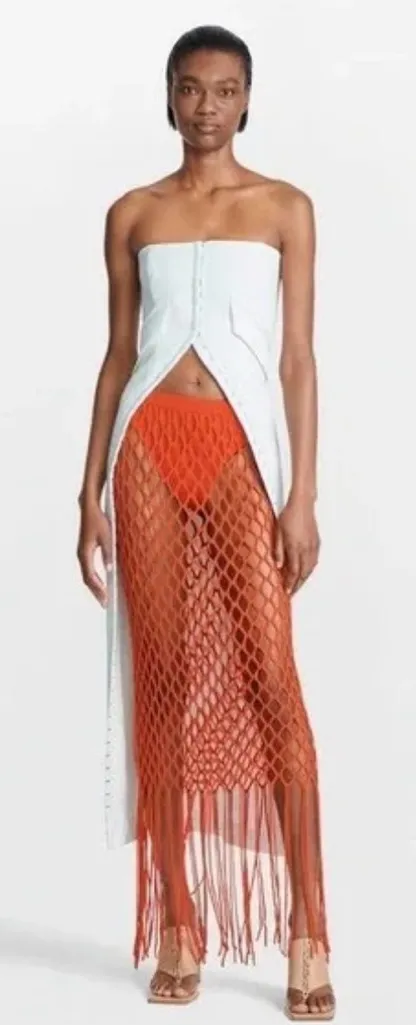 Has a couple small marks as shown. The Dion Lee Gill Pocket Bustier in Clear Blue is a fitted, strapless corset top with functional zippers and pockets, designed for a sensual yet architectural look. AU XXS = US 0