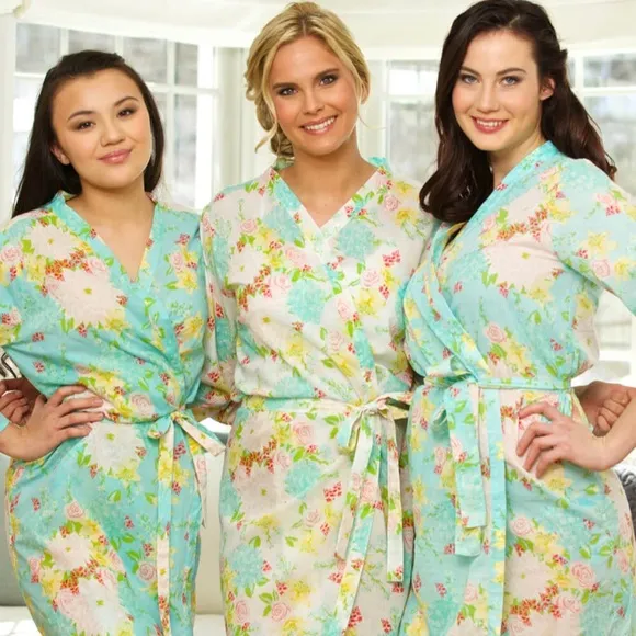NWT The Paisley Box 100% cotton floral “Dahlia” print robe. Size Small. Great to gift for a wedding, shower, engagement, Mothers Day, so day, or just because day! Beautiful teal, pink, greens on a whit background. Made of 100% cotton Very soft and breathable 37” long & Made to hit just above the knee Robes have an inner tie and outer ties. No flaws whatsoever — brand new and never worn. Smoke-free house.