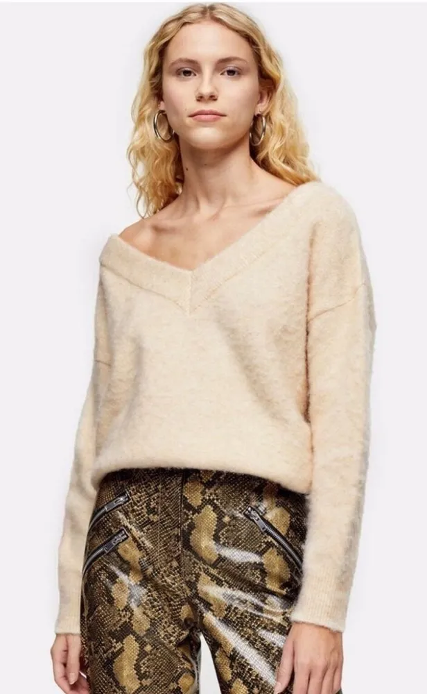 TopShop Oat Knitted Brushed Bardot Slouchy Sweater Cream Size Large Nordstrom brand NWOT Wrap up i... Show more