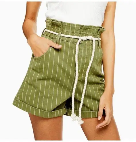 -NEW WITH TAGS -Topshop Stripe Denim Shorts with Rope Belt -Size: 10 (UK 14) -Color: Olive Green wi... Show more