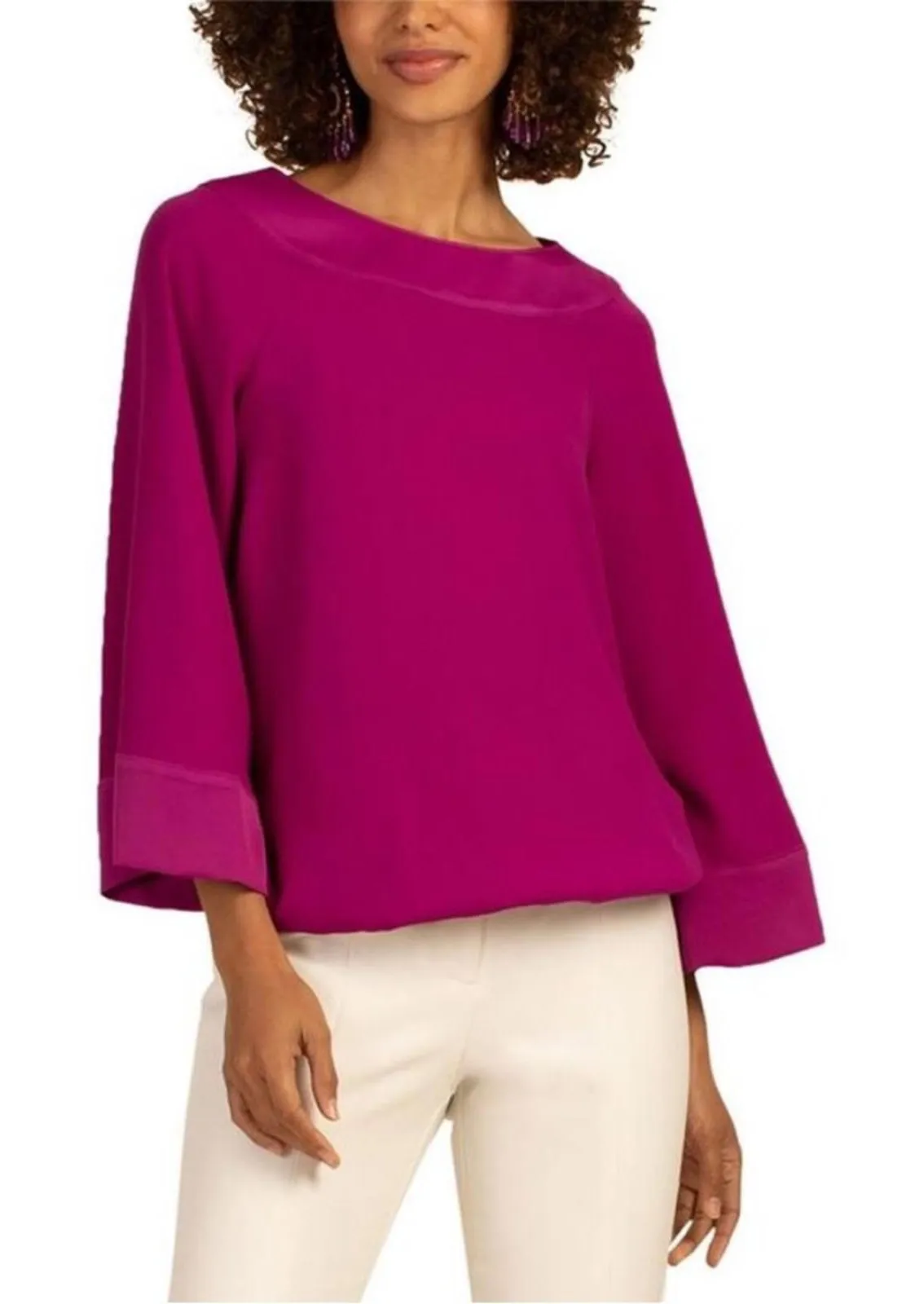 NWT Trina Turk Constellation Top in Purple Fuschia Size M $228 brand new gorgeous satin 3/4 sleeve... Show more